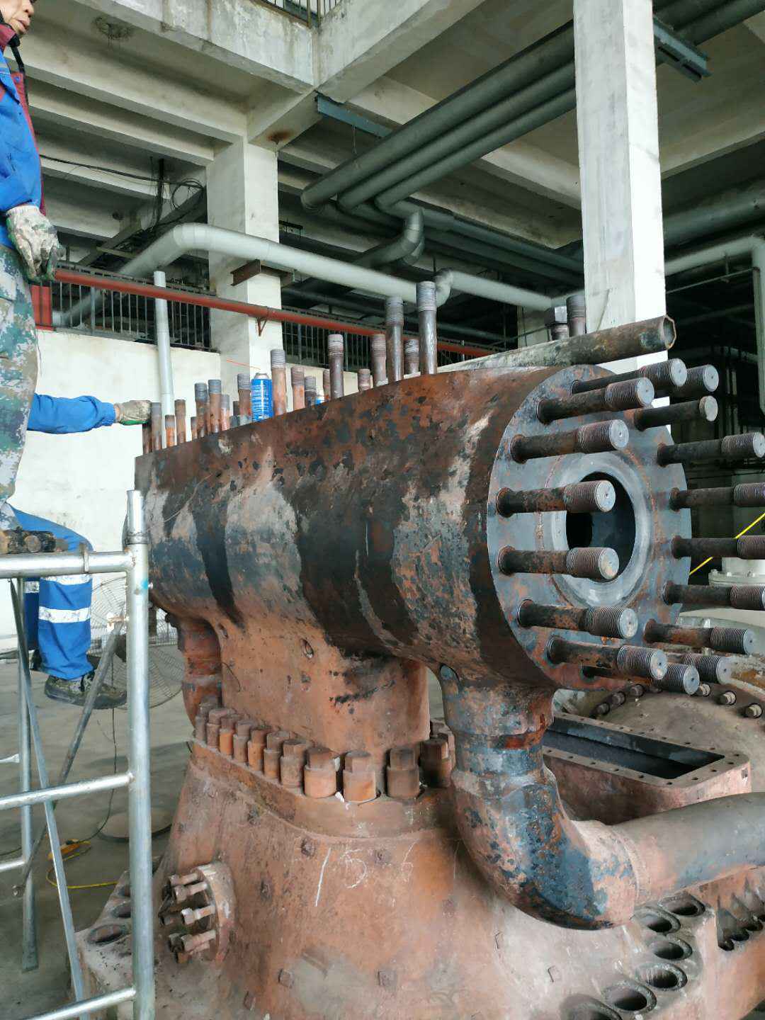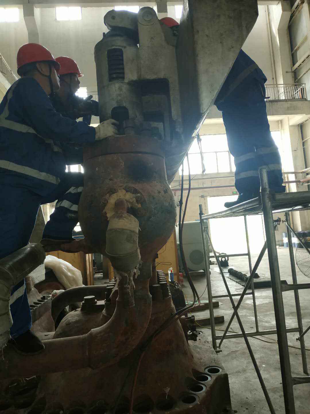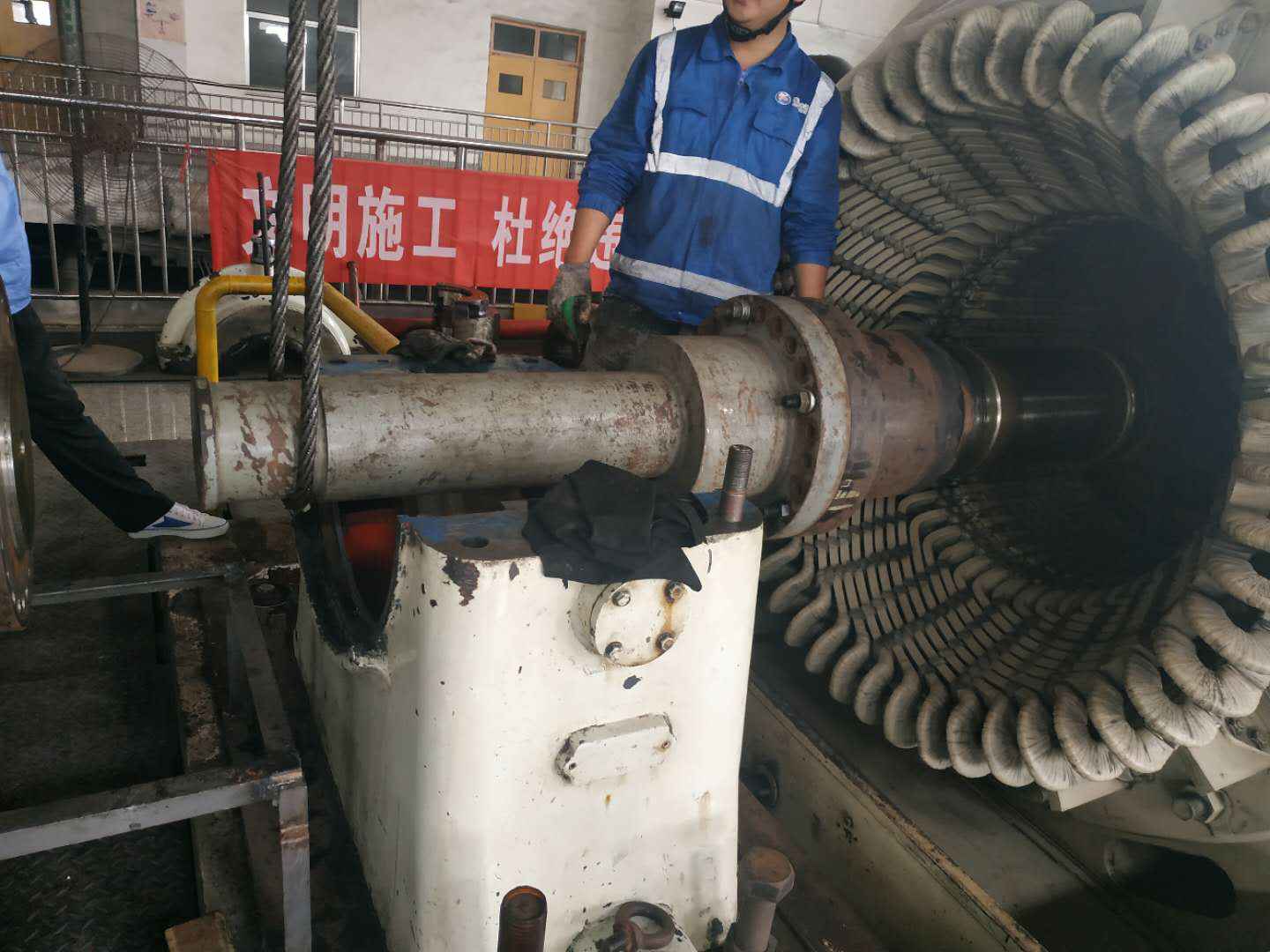 由开云体育(中国)开云KAIYUN承建的山东海能化学有限责任公司机组B15MW背压式汽轮机组(原 C25抽汽凝汽式机组)大修工程现已完成凝结水泵、油站检修工作,发电机前后轴承座基础垫铁研磨工作,目前蒸汽室螺栓的拆卸工作及发电机定子与转子的清理工作陆续启动,下气缸吊隔板工作也在稳步进行中。